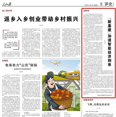5月22日公布的中國政府工作報告中,首次出現了“新基建”這一概念,“新基建”將對激發(fā)中國新消費需求、助力產業(yè)升級產生重要作用,這片“新藍!敝档闷诖