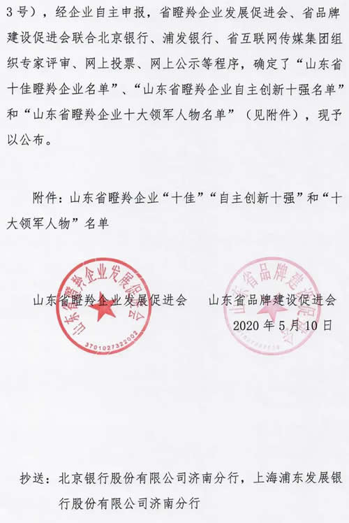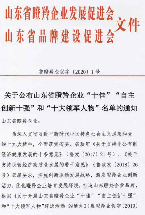 2020年山東省瞪羚企業(yè)自主創(chuàng)新十強(qiáng)名單