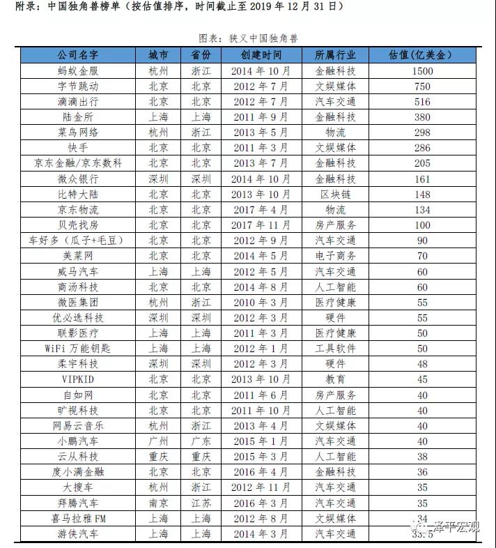 2019年中國獨(dú)角獸企業(yè)數(shù)量達(dá)到218家,總估值7964億美元,平均估值36.5億美元,超過100億美元(含)的超級(jí)獨(dú)角獸企業(yè)共7家