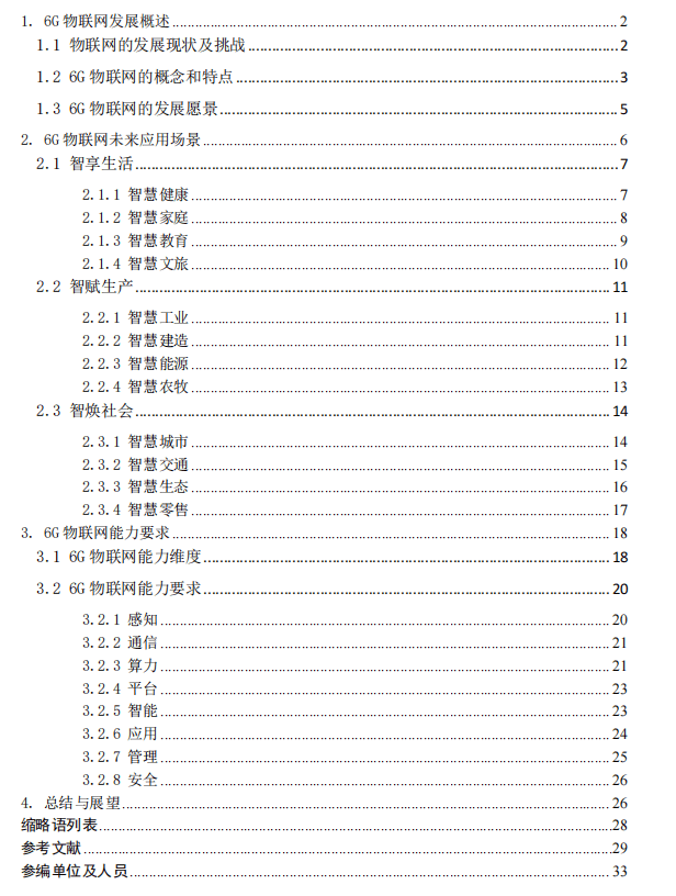 《白皮書》系統(tǒng)化的梳理了6G物聯(lián)網(wǎng)在智享生活、智賦生產(chǎn)和智煥社會(huì)三大L域的未來應(yīng)用場景,并提出在感知、通信、計(jì)算、平臺(tái)、智能、應(yīng)用、管理和安全等方面的能力需求。