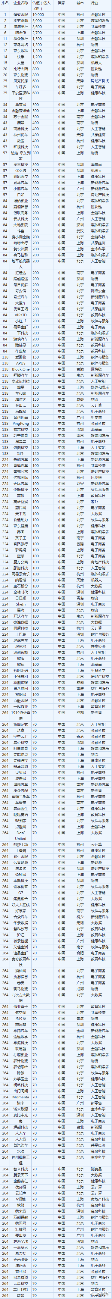 根據(jù)胡潤(rùn)研究院發(fā)布的2019胡潤(rùn)獨(dú)角獸榜單,中國(guó)共有206家獨(dú)角獸企業(yè)上榜,其中螞蟻金服以10000億元估值位居2019中國(guó)獨(dú)角獸企業(yè)排名榜首,開(kāi)發(fā)今日頭條的字節(jié)跳動(dòng)估值5000億排在D二位,滴滴出行、陸金所以及由騰訊L頭的國(guó)內(nèi)首家民營(yíng)銀行微眾銀行排在前五位,估值超過(guò)千億的還有菜鳥(niǎo)網(wǎng)絡(luò)、京東數(shù)科、快手和大疆。