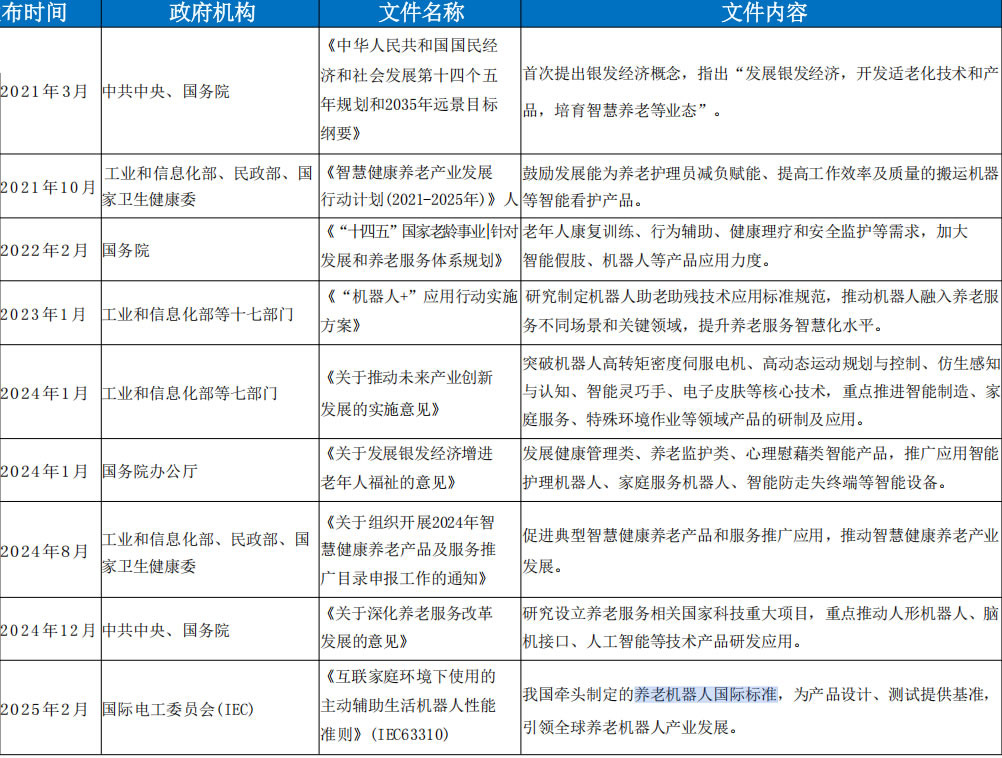 基于社會老齡化和安全戰(zhàn)略考量,21年來黨和密集出臺多項養(yǎng)老機(jī)器人D層政策文件,彰顯對老齡化工作的