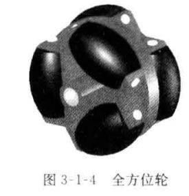 全方位輪種類很多,本節(jié)以圖3-1-4中所示的全方 位輪為例進(jìn)行討論,它的組成是在輪轂的外緣上設(shè)置有 可繞自己的軸旋轉(zhuǎn)的輥子,且均勻分布于輪轂周圍,這 些輥子軸線(E) 和輪轂軸線(S,) 的夾角a 為90°。該麥 卡納姆輪由雙排自由滾動的輥子組成,使得輪子在地面 滾動時形成連續(xù)的接觸點。而在運動時輪轂是驅(qū)動機 構(gòu),輥子是從動機構(gòu),因此在本節(jié)中主動輪由圖3-1-5 所示車輪輪轂與邊沿輥子組成,從動輪為車輪輥子,主 動輪、從動輪與地面接觸點均為輥子與地面的接觸點。