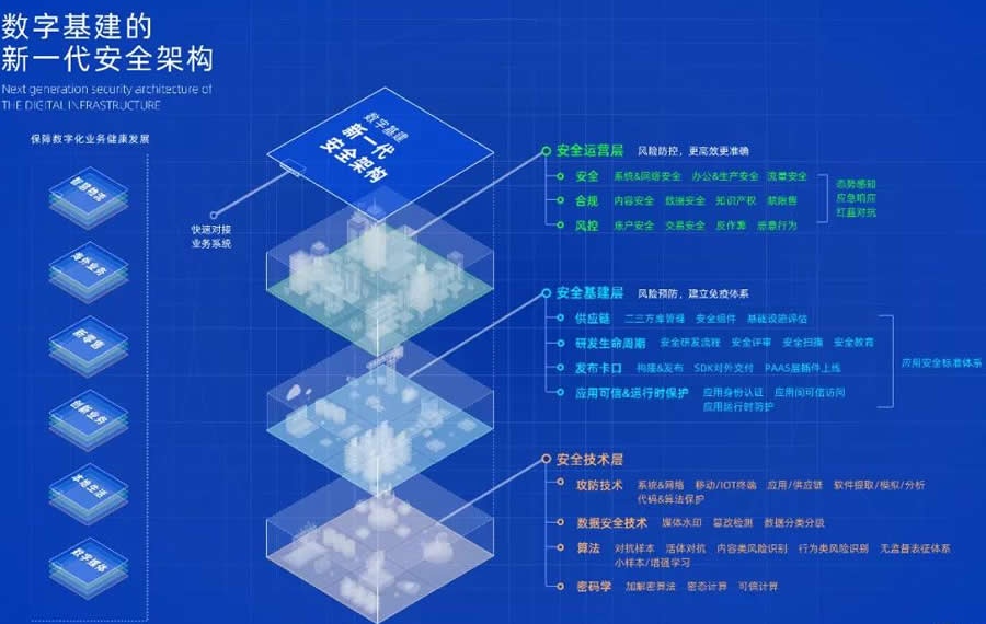 在“安全基建”概念中,新架構(gòu)整合阿里安全能力和運營經(jīng)驗,形成一套即插即用的標(biāo)準(zhǔn)化安全架構(gòu),為各類 App 和網(wǎng)站等數(shù)字經(jīng)濟(jì)實體的搭建過程建立標(biāo)準(zhǔn)化流程,幫助構(gòu)建數(shù)字化進(jìn)程中的安全基礎(chǔ)設(shè)施。&