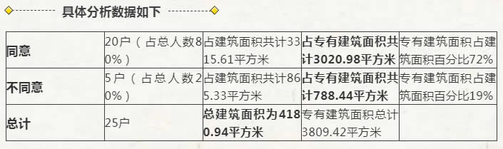 2016年1月10日,湛江市霞山區(qū)某小區(qū)就召開了業(yè)主大會,并作出決議,確認該小區(qū)業(yè)主共有66戶,其中同意加裝小區(qū)電梯的業(yè)主數(shù)為52戶(東門總共25戶,其中20戶同意加裝;中門總共17戶,其中9戶同意加裝;西門總共24戶,其中23戶同意加裝),該小區(qū)業(yè)主大會會議決定:在該小區(qū)東門、西門各加裝一臺電梯。2016年11月18日,根據(jù)該小區(qū)的申請,湛江規(guī)劃局依法頒布了在該小區(qū)東門、西門各加裝一臺電梯的《建設工程規(guī)劃許可證》。小區(qū)西門的電梯安裝較為順利,但東門不同意安裝的5位業(yè)主對在東門安裝電梯的工程實施中百般阻撓,將車輛停放在施工現(xiàn)場以阻礙施工。經(jīng)派出所、社區(qū)法律顧問等多方調解無效后,2017年9月11日,東門同意安裝的李康林等20人將不同意安裝的戴戈等5人訴上法庭,要求被告移走障礙物,不得阻止電梯安裝。 經(jīng)法院查明,涉及本案的業(yè)主共有25戶,分為三種戶型,E號戶型的建筑面積為182.78平方米、專有建筑面積為166.54平方米,F(xiàn)號戶型的建筑面積為144.48平方米、專有建筑面積為131.64平方米,G號戶型的建筑面積為172.51平方米、專有建筑面積為157.18平方米。同意加裝電梯的戶主有20戶,其中E號戶型有6戶,F(xiàn)號戶型有7戶,G號戶型有7戶,占建筑面積共計3315.61平方米,占專有建筑面積共計3020.98平方米。不同意加裝電梯的戶主有5戶,其中E號戶型有3戶,F(xiàn)號戶型有1戶,G號戶型有1戶,占建筑面積共計865.33平方米,占專有建筑面積共計788.44平方米。涉案樓房東門業(yè)主的總建筑面積為4180.94平方米。