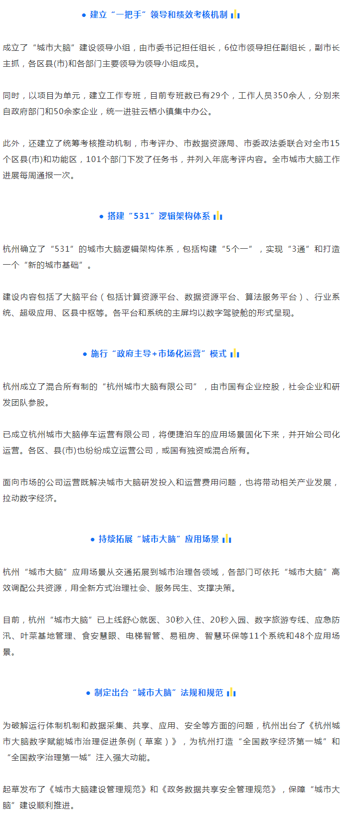 治堵取得階段性勝利后,2018年9月和12月,杭州市推出了“城市大腦升級”版,提出構(gòu)建 “以大腦中樞平臺為核心,縱向到區(qū)縣(市),橫向到各部門”的“城市大腦”,建立了市級、部門系統(tǒng)、區(qū)縣平臺和街道平臺四類數(shù)字駕駛艙,并聚焦城市治理的“痛點”“堵點”和群眾反映強烈的“熱點”“難點”問題,推出了11大系統(tǒng)和48個應(yīng)用場景,“城市大腦”在城市運行的生命體征感知、公共資源配置、宏觀決策指揮、事件預(yù)測預(yù)警、“城市病”治理等方面發(fā)揮了重要作用。