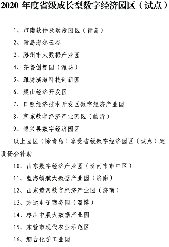 以上園區(qū)(除青島)享受省級數(shù)字經(jīng)濟(jì)園區(qū)(試點(diǎn))建設(shè)資金補(bǔ)助