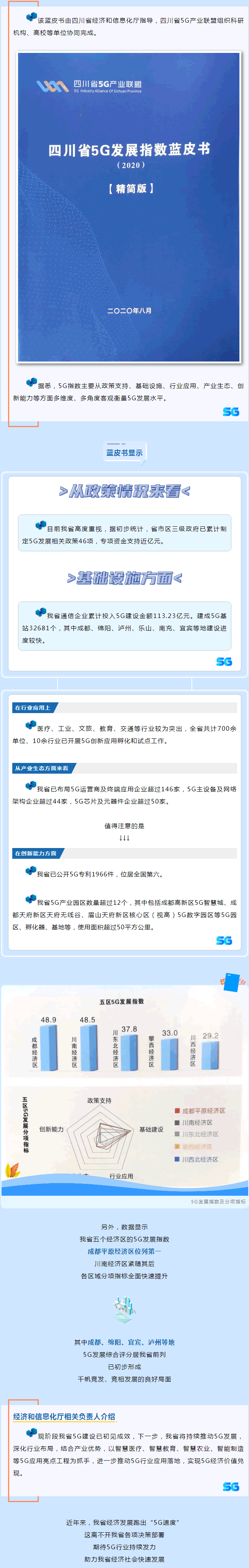 四川省5G產(chǎn)業(yè)聯(lián)盟牽頭編制的《四川省5G發(fā)展指數(shù)藍(lán)皮書(shū)(2020版)》(下簡(jiǎn)稱:5G發(fā)展指數(shù))首次發(fā)布。此次發(fā)布的藍(lán)皮書(shū)由省經(jīng)濟(jì)和信息化廳指導(dǎo),四川省5G產(chǎn)業(yè)聯(lián)盟組織科研機(jī)構(gòu)、G校等單位協(xié)同完成。該藍(lán)皮書(shū)顯示,四川5G建設(shè)已初見(jiàn)成效:通信企業(yè)累計(jì)投入5G建設(shè)金額113.23億元;在創(chuàng)新能力方面,已公開(kāi)5G專利1966件,位居全國(guó)第六,5G產(chǎn)業(yè)園區(qū)數(shù)量超過(guò)12個(gè);在產(chǎn)業(yè)生態(tài)方面,已布局5G運(yùn)營(yíng)商及終端應(yīng)用企業(yè)超146家,5G主設(shè)備及網(wǎng)絡(luò)架構(gòu)企業(yè)超44家,5G芯片及元器件企業(yè)超50家。