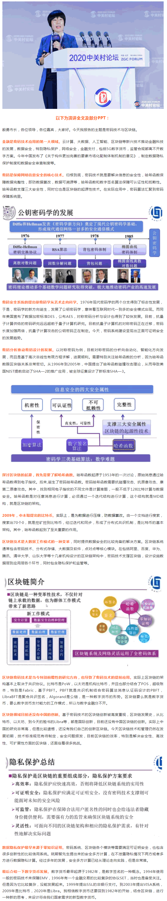 在2020中關(guān)村論壇上,中國科學(xué)院院士,國際密碼協(xié)會(huì)會(huì)士(IACRFellow),清華大學(xué)G等研究院“楊振寧講座”教授王小云發(fā)表《密碼技術(shù)與區(qū)塊鏈》主題演講。
