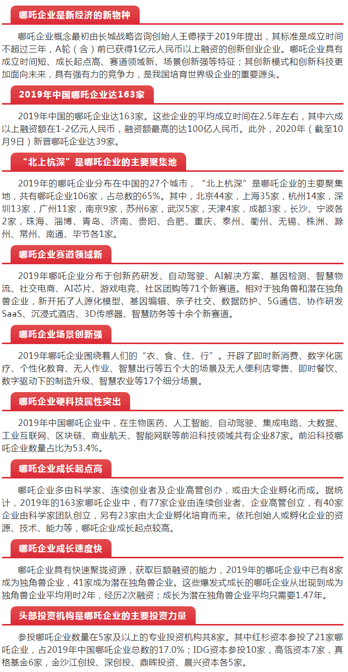 2019年中國的哪吒企業(yè)達(dá)163家。這些企業(yè)的平均成立時(shí)間在2.5年左右,其中六成以上融資額在1-2億元人民幣,融資額G的達(dá)100億人民幣