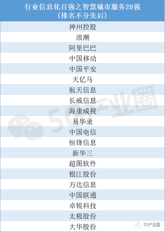 2020行業(yè)信息化競爭力之智慧城市服務(wù)20強(qiáng)