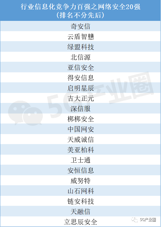 2020行業(yè)信息化競爭力之網(wǎng)絡安全20強