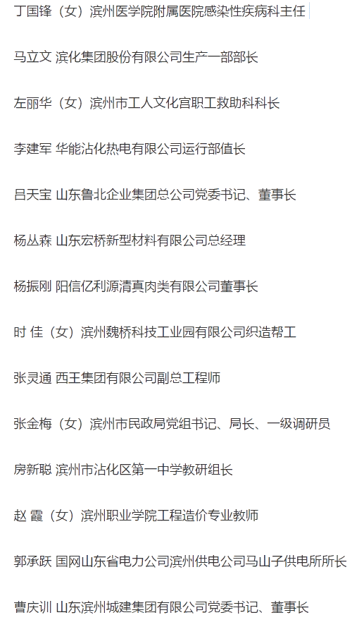 2021年濱州市五一勞動獎?wù)芦@得者名單