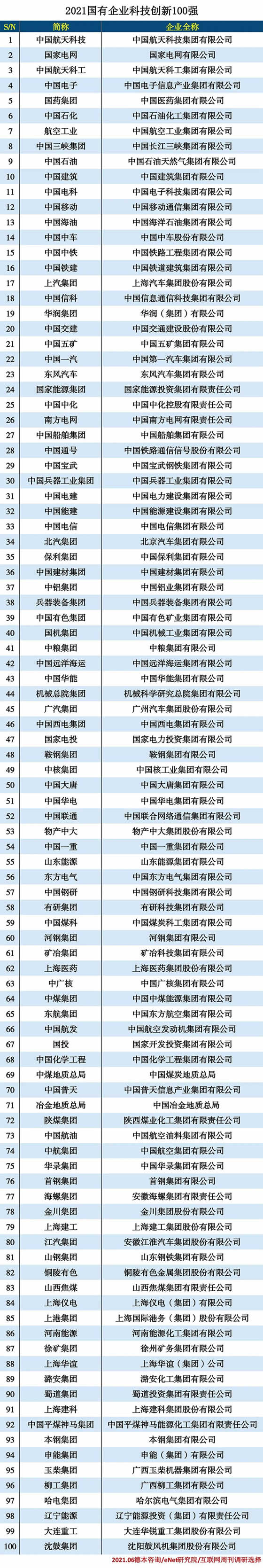 2021國(guó)有企業(yè)科技創(chuàng)新100強(qiáng)